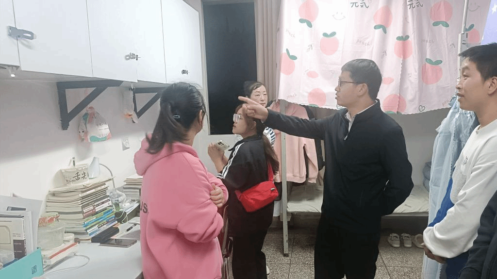 走访过程中,张来与同学们就英语学习以及大学期间如何提升自学能力等方面进行交流,详细了解学生在水、电等方面的使用情况,并进行安全隐患排查。张来强调,近期非必要不出省、市,减少网购,主动申报告知“两码”情况,配合健康检测,身体不适及时就医,公共场所主动佩戴口罩等疫情防控常识。同时,还鼓励同学们,大学期间要好好学习,多做运动,学习上更要自律,更要讲方法,讲效率,并希望同学们在安顺学院充分展现蓬勃向上的青春活力风采,争取大学四年满载而归。