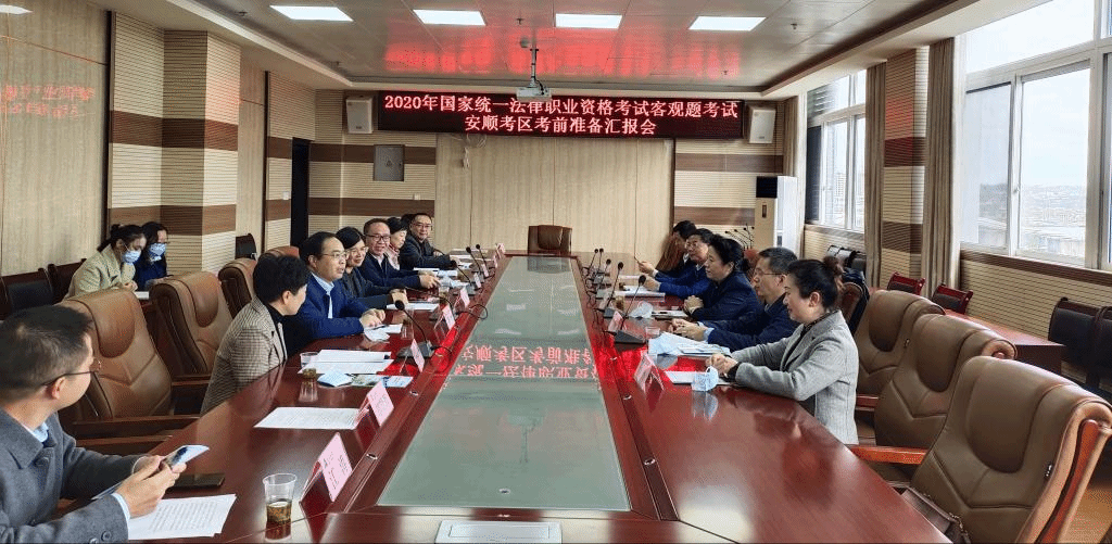 会上,安顺市司法局局长杨勇向检查组就安顺考区考务保障工作和疫情防疫工作等进行汇报。安顺学院副校长韦英、安顺市卫健局王鹏副科长也表示认真做好本次考试的保障工作,保证此次考试顺利开展。
