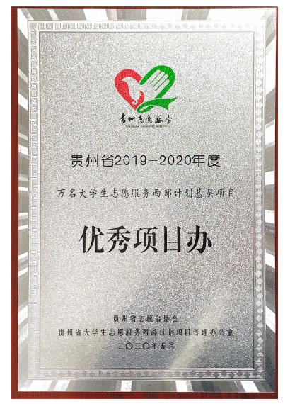 近日,贵州省大学生志愿服务西部计划项目管理办公室下发《关于表彰贵州省万名大学生志愿服务西部计划基层项目2019-2020年度优秀项目办的决定》通知,安顺学院被评为贵州省2019-2020年度大学生志愿服务西部计划基层项目“优秀项目办”。