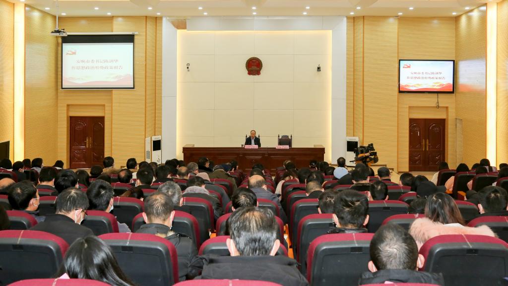 12月30日下午,市委书记陈训华到安顺学院讲授思想政治理论课,宣讲党的十九届五中全会、省委十二届八次全会、市委四届九次全会精神。他强调,要深入学习贯彻落实党的十九届五中全会、省委十二届八次全会、市委四届九次全会精神,教育引导广大师生把思想和行动统一到全会精神上来,发挥自身优势,更好服务“十四五”时期发展战略,努力将安顺学院建设成为办学特色鲜明的地方性应用型大学。