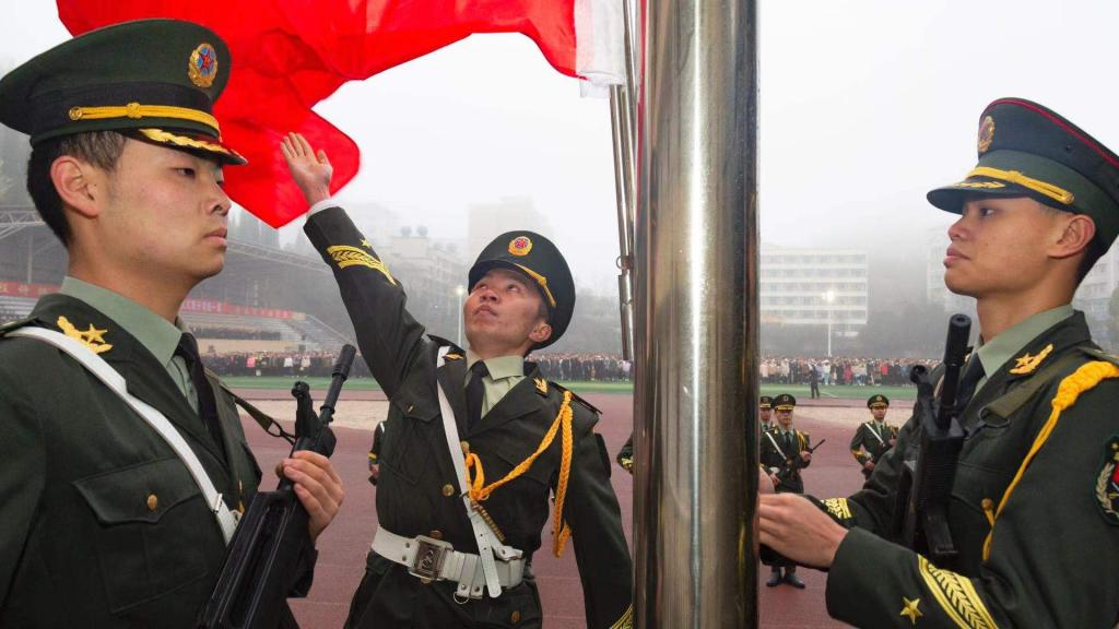 晨曦拂晓,春雨绵绵。清晨8:00,国旗护卫队的同学以挺拔俊逸的身姿、坚定矫健的步伐和铿锵有力的号令,护送国旗进场,全体师生行注目礼。伴随着嘹亮的义勇军进行曲,五星红旗迎着新学期的春风冉冉升起。