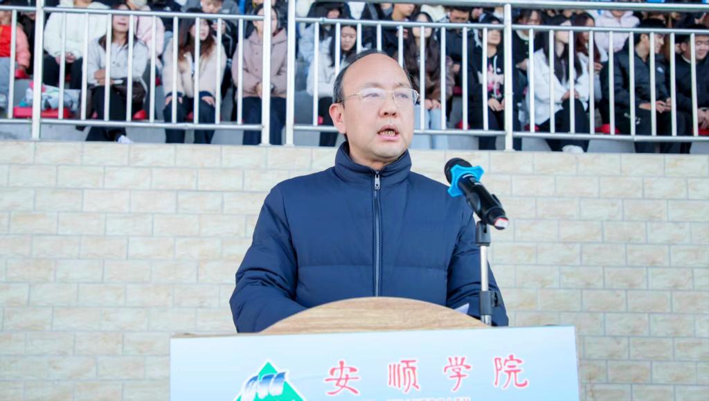 冬日暖阳洒满绿茵场,青春激情点燃校园魂。2025年12月1日下午15:00,安顺学院2025-2026赛季“校长杯”校园足球联赛开幕式在学校运动场隆重举行。校党委书记程绪权,校长曾丽,党委副书记李琳、副校长孙向阳、学校党政办,宣传部、教务处、团委,学工部负责人,各二级学院党委书记、院长以及全体参赛运动员、裁判员和师生代表近4500人齐聚一堂,共同见证这场呼应全省赛事号召、融合体育精神与育人使命的校园盛会,开幕式由副校长张来主持。