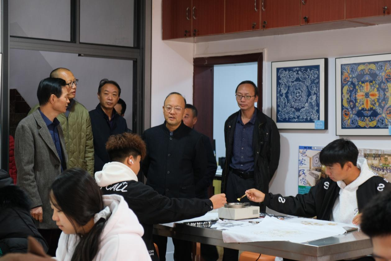10月22日上午,安顺学院党委书记程绪权深入艺术学院蜡染实习基地考察调研,实地了解学生实践教学开展情况,为传统工艺与高校教育融合发展把脉定向。教务处、艺术学院班子成员、实践教学负责人及基地负责人陪同调研。