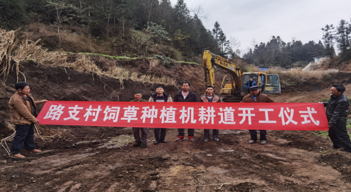近日,在安顺学院党委领导的帮助协调下,路支村农田建设项目——饲草种植机耕道破土动工。驻村第一书记陈欣、村党支部书记张华、村主任陈运等到现场与施工队交接项目施工有关事项,并要求按照机耕道设计要求与标准,必须保质保量如期完成机耕道建设工程任务。