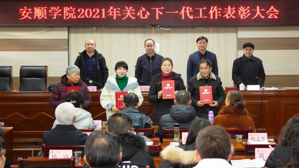 12月15日下午,安顺学院关心下一代工作委员会成立三十周年暨关心下一代工作表彰大会在特教大楼七楼会议室召开。安顺学院党委书记罗荣彬,党委副书记、校长陈云坤,党委常委、副校长、校关工委主任郭本华出席会议,各学院二级关工委主任、副主任,校关工委领导小组成员、校关工委全体成员部门负责人及先进个人获得者参加会议。会议由校关工委副主任杨通邦主持。