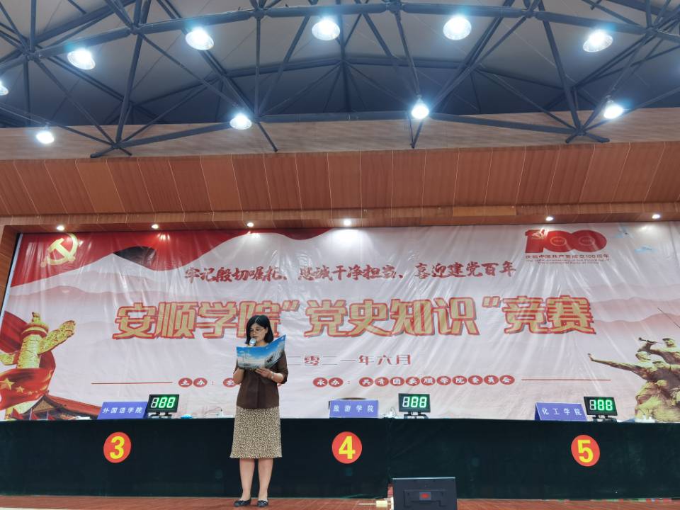 为迎接建党100周年,引导广大青年学生了解党的光辉历史、讴歌党的丰功伟绩、抒发对党的感恩之情,6月9日下午,我校举行“党史知识”竞赛。安顺学院党委委员、副校长韦英出席活动并致辞。机关党委书记蔡少平、马克思主义学院院长黎进深、人事处处长樊亚担任大赛评委。校团委全体人员、各代表队带队教师、各参赛队伍、各学院学生代表共计700余人参加活动。