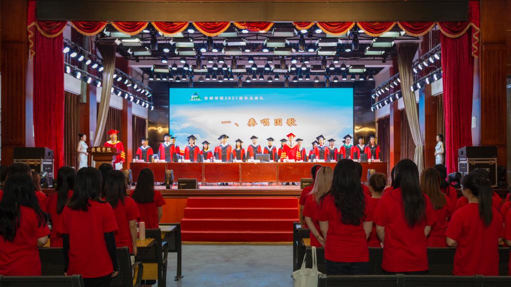 端午的粽香还未完全散去,夏天的蝉鸣还未完全响起,此时此刻,在安院礼堂,离歌再一次为远行的少年们响起,6月22日早晨8时30分,安顺学院2021届毕业典礼在我校礼堂隆重举行。2693名毕业生代表及其亲友、老师共同见证这一神圣的时刻。安顺学院校领导、各二级学院院长身着学位服向毕业生送出真挚的离别祝福,并为他们拨穗、授予学位。这场毕业典礼有初心、有憧憬、有不舍、有回忆、有待弥补的遗憾、更有跃然的希冀……