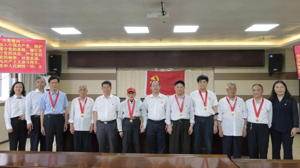 上午10时,活动正式开始,罗荣彬为老党员代表颁发并佩戴“光荣在党50年”纪念章,面对鲜红当党旗,罗荣彬带领新、老党员举起右拳,庄严宣誓。
