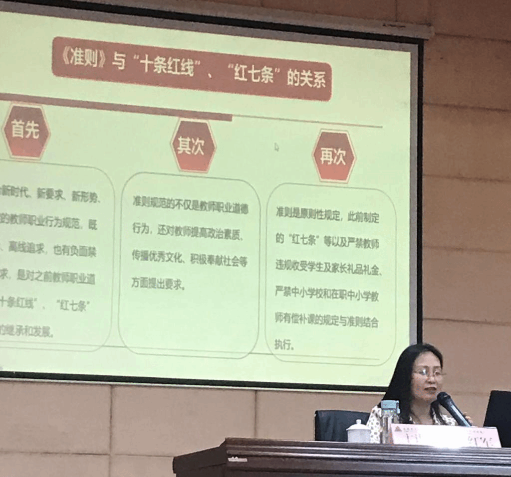培训会上,李红军用案例结合高校实际,深入浅出的为全校教师详细解读了《新时代高校教师职业行为十项准则》,让教师全面理解和准确把握《十项准则》,做到人人应知应做、必知必做,真正把教书育人和自我修养结合起来,时刻自重、自省、自警、自励,自觉做以德立身、以德立学、以德施教、以德育德的楷模,维护教师职业形象,提振师道尊严。
