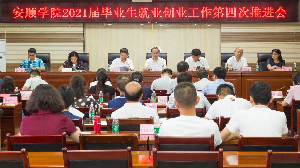 7月23日,安顺学院在特教楼七楼会议室召开了2021届毕业生就业创业工作第四次推进会。安顺学院党委书记罗荣彬、校长陈云坤、党委副书记陶文彩、副校长郭本华、纪委书记蔡红英,副校长韦英、张来出席会议。相关职能部门负责人及各二级学院党政主要负责人,各二级学院就业专干,招就处全体工作人员参加会议。会议由陈云坤主持。