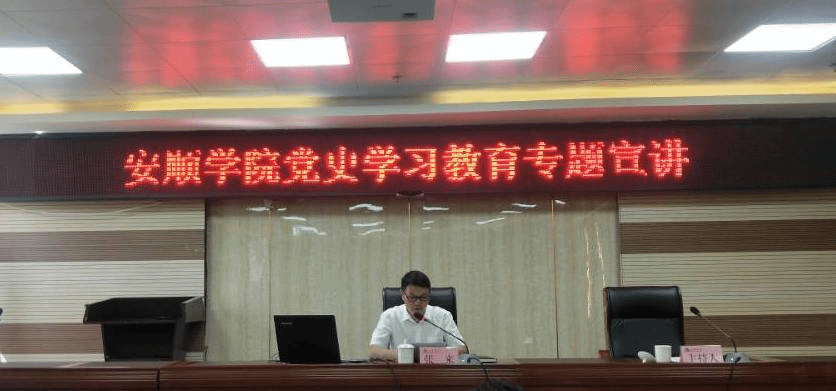 2021年9月10日下午,安顺学院副院长张来作题为《学习“七一”讲话精神,领悟“九个必须”,推动安顺学院教育教学高质量发展》专题宣讲。教务处、质评中心、学生工作处(学生工作部、武装部)等其分管联系的部门和学院党员教师聆听了宣讲。