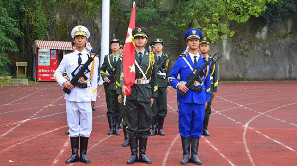 学生工作处(学生工作部、武装部)处长(部长)、学生军训团副团长鲁小周代表军训团接旗