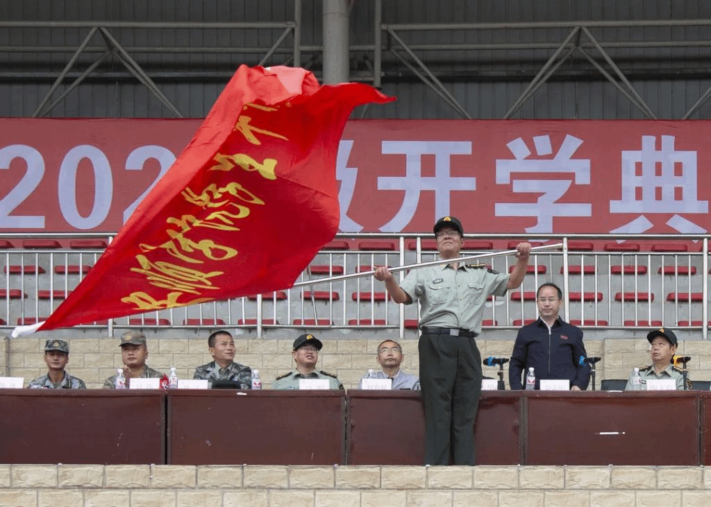 开学典礼结束后,在现场热烈的掌声中,陶文彩宣布安顺学院2021级学生军训动员大会正式开始。蔡红英宣读了安顺学院2021级学生军训团干部名单。罗荣彬为军训团授旗,学生工作处(学生工作部、武装部)处长(部长)、学生军训团副团长鲁小周代表军训团接旗。