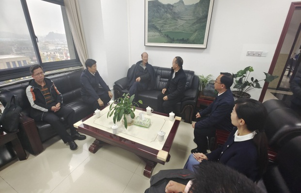 左定超关切询问了我校升本以来学校办学条件、人才培养质量、科研水平、省社科基地发展、对外合作交流、统战人士培养等情况,对近年来学校制定的方针、取得的成绩表示肯定,同时也为我校发展提出良策。