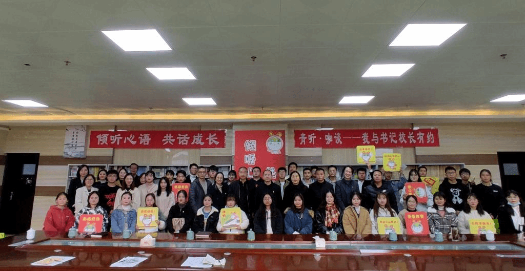 为扎实推进党史学习教育,将“学史明理、学史增信、学史崇德、学史力行”落实到实处,全心全意为人民群众办实事、为学生解难题。2021年11月8日下午,安顺学院举行“青听·咖谈—我与书记校长有约”活动,安顺学院党委书记罗荣彬,安顺学院党委委员、副校长、党委宣传部部长殷红敏,党政办、组织部、宣传部、团委、学生工作处、后勤处、保卫处等部门负责人,安顺学院各校级学生组织、各二级学院学生干部代表等50余人参加活动。本次活动由安顺学院团委书记胡蕾主持。