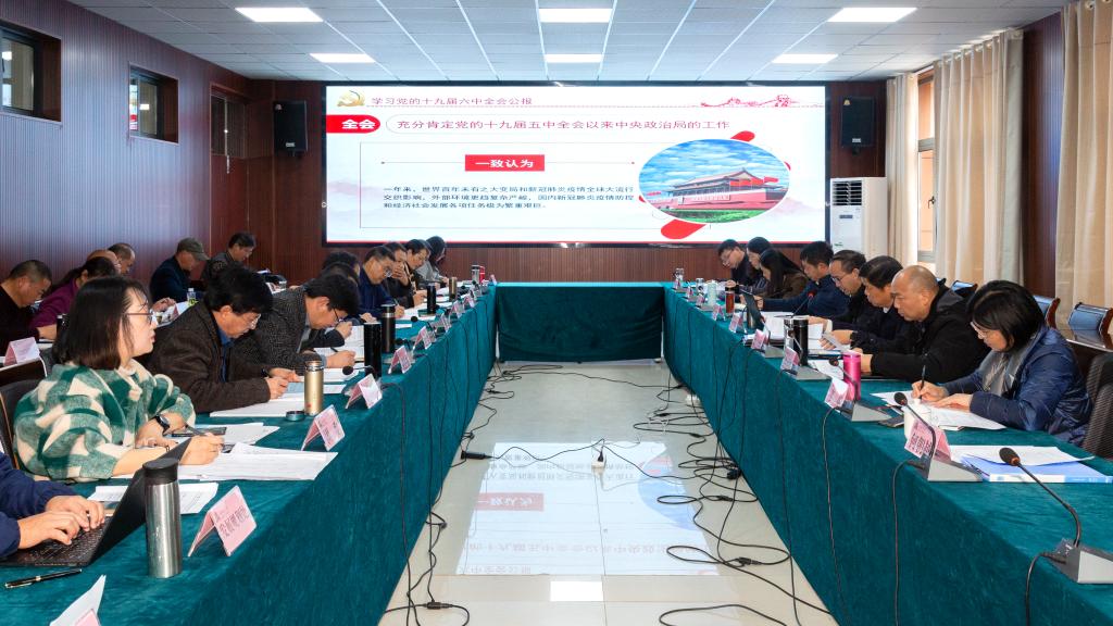 2021年11月26日,安顺学院召开党委理论学习中心组专题学习会议,集中学习党的十九届六中全会精神。学校领导班子成员及各职能部门主要负责人,各二级党委书记参加学习。会议由党委副书记陶文彩主持。