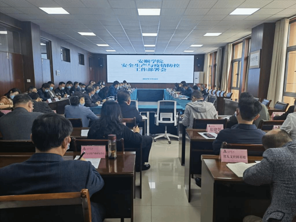 3月14日上午,安顺学院在安道楼第一会议室召开安顺学院安全生产与疫情防控工作部署会。党委副书记陶文彩,党委委员、纪委书记蔡红英,党委委员、副校长韦英、殷红敏,以及各部门负责人、各二级学院党委书记参加会议。会议由校长陈云坤主持。