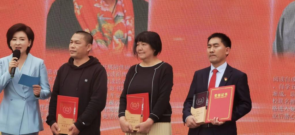 安顺学院教师蔡伟(左二)荣获贵州省2021年度“十大阅读影响力人物”特别奖表彰