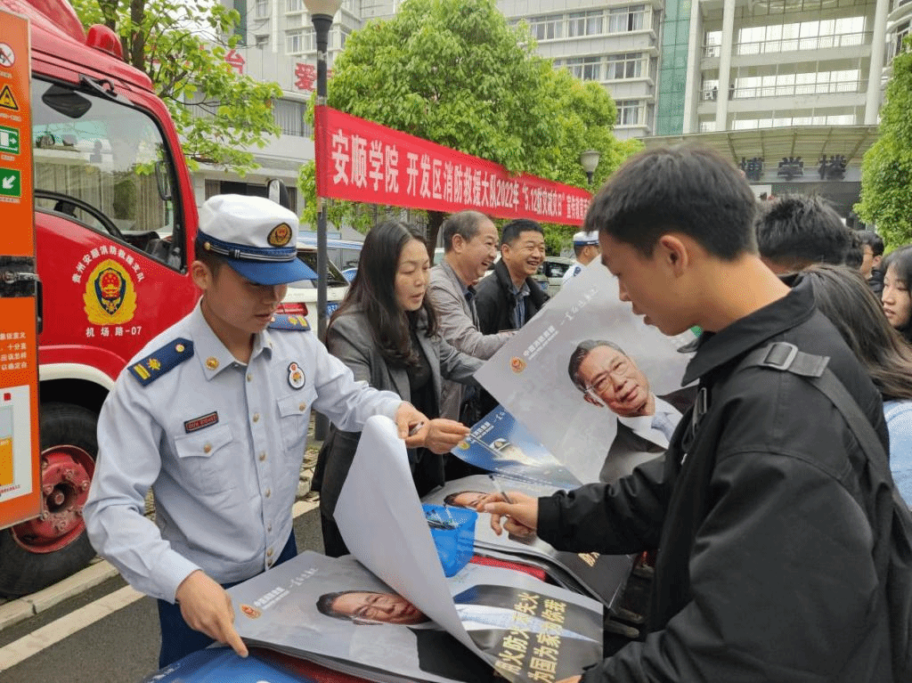 在全国第14个防灾减灾日来临之际,为加大防灾减灾救灾宣传力度,普及安全知识,提高师生防灾减灾意识和自救互救技能,减少灾害发生造成的损失。13日上午,安顺学院联合开发区消防救援大队开展以“减少灾害风险 守护美好家园”为主题的“5·12”全国防灾减灾宣传教育活动。安顺学院党委委员、副校长殷红敏,保卫处副处长郝捷、陈欣及相关工作人员参与活动。