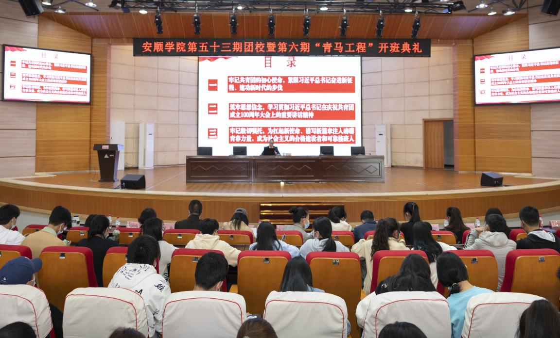 2022年5月23日下午,安顺学院第五十三期团校暨第六期“青马工程”培训班开班典礼在学术报告厅举行。安顺学院党委书记罗荣彬,安顺学院党委委员、副校长、团校校长殷红敏,校团委全体工作人员,团校各学习班班长,第五十三期团校暨第六期“青马工程”培训班学员代表参加开班典礼。开班典礼由校团委副书记谌兰樱主持。