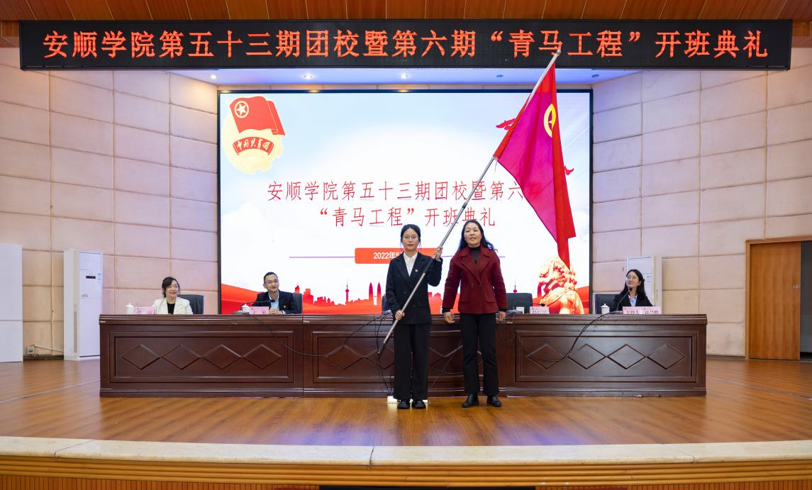 安顺学院党委委员、副校长、团校校长殷红敏为第五十三期团校授旗
