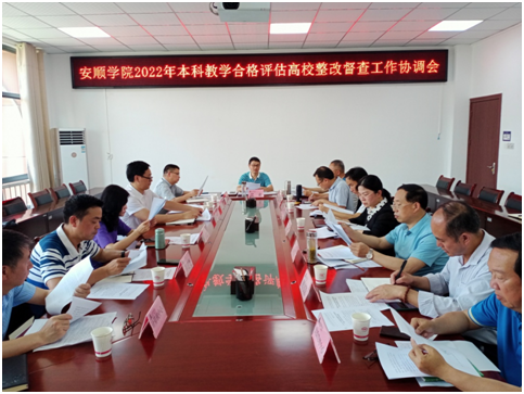 6月30日下午,安顺学院在安道楼五楼第二会议室召开了2022年本科教学合格评估高校整改督查工作协调会,相关部门负责人参会,会议由安顺学院副校长张来主持。
