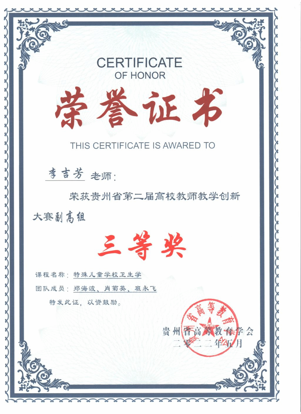 近日,贵州省教育厅公布了贵州省第二届高校教师教学创新大赛结果,安顺学院喜获佳绩,教育学院教师团队参赛代表主讲教师李吉芳副教授(成员郑海波、肖菊英、班永飞)荣获副高组三等奖。