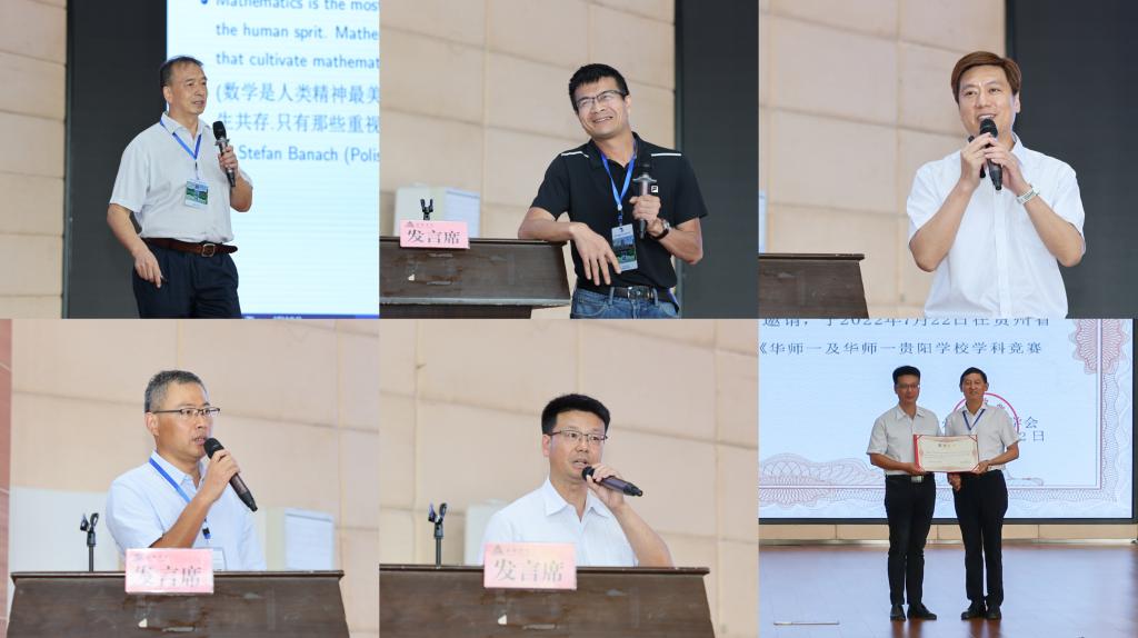 贵州民族大学校长王林、贵州师范学院校长韦维、安顺学院校长陈云坤、兴义民族师范学院副院长彭光明、西南大学数学研究所所长周家足,中国科学院教授、南昌大学数学与交叉科学研究院院长李竞,贵州省数学学会理事长、贵州大学数学与统计学院党委书记杨辉,贵州大学数学与统计学院院长王锦荣,贵州省数学学会副理事长、贵州民族大学模式识别重点实验室副主任索洪敏,安顺学院数学与计算机科学学院院长钱淑渠、上海大学理学院副院长余长君、贵州师范大学数学科学学院副院长吴云顺、广东财经大学广州华商学院教授林海明等国内数学界专家学者,及贵州省数学学会理事、安顺学院师生等600余人齐聚瀑乡安顺,旨在通过学术交流拓展科研工作者的事业,促进贵州数学学科发展。