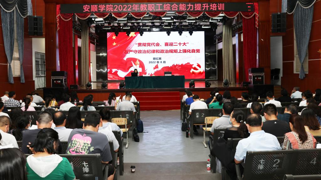 为进一步加强师德师风建设,提高教职工思想政治素质和教学科研管理水平,2022年8月16日至18日,安顺学院组织开展2022年教职工综合能力提升培训。培训共五个专场,全校教职工参加培训。