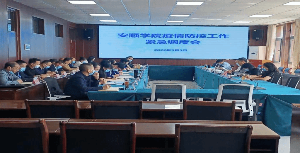 9月5日,安顺学院召开疫情防控工作紧急调度会。安顺学院党委书记罗荣彬,党委副书记陶文彩,党委委员、副校长郭本华,党委委员、副校长韦英,副校长张来,党委委员、副校长殷红敏出席会议,部分职能部门负责人、各学院党委书记列席会议,罗荣彬主持会议。