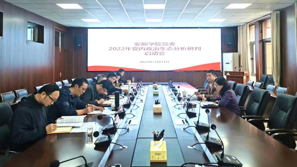 为配合省纪委做好对学校党委的政治生态分析研判工作,11月11日上午,安顺学院党委2022年党内政治生态分析研判启动会在安道楼五楼会议室召开。安顺学院党委副书记陶文彩出席会议,学校党内政治生态分析研判机制成员单位及相关部门主要负责人参会。