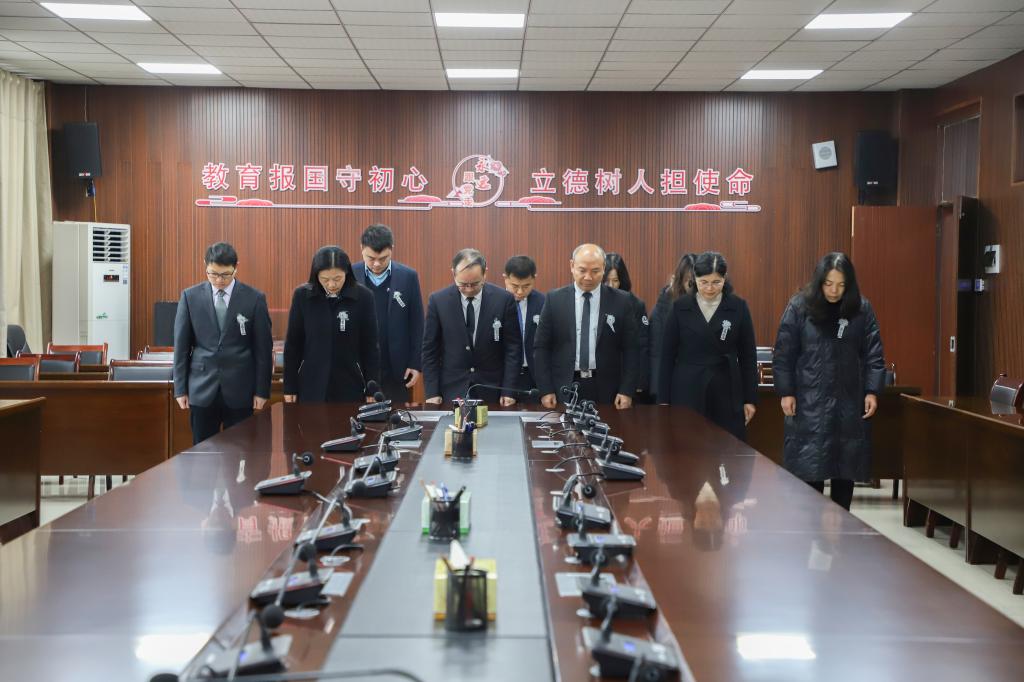 校领导班子成员在安道楼第一会议室沉痛哀悼江泽民同志
