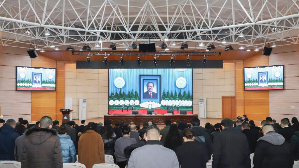 处科级干部、党务干部在学术报告厅沉痛哀悼江泽民同志