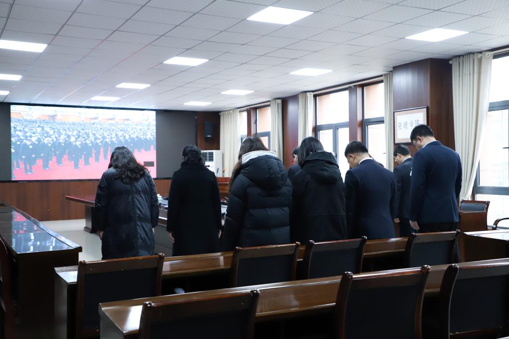 安顺学院组织广大党员、干部、教职工和学生胸戴白花,神情肃穆,怀着悲痛和敬仰之情全程站立收听收看江泽民同志追悼大会现场直播。校领导班子成员在安道楼第一会议室收看直播,参加学校举办的学习贯彻党的二十大精神培训班的处科级干部、党务干部在学术报告厅收看直播。