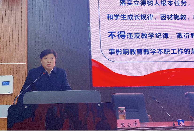 陈云坤强调,全体教师要深入学习贯彻习近平总书记关于教育的重要论述,深刻把握“九个坚持”的精神内涵,学懂弄通“为谁培养人,培养什么样的人,怎样培养人”这个教育的根本问题,全面落实立德树人根本任务,坚决贯彻党的教育方针,全力为培养德智体美劳全面发展的合格社会主义建设者和接班人而不懈奋斗。(文/图:党政办 廖得堾)