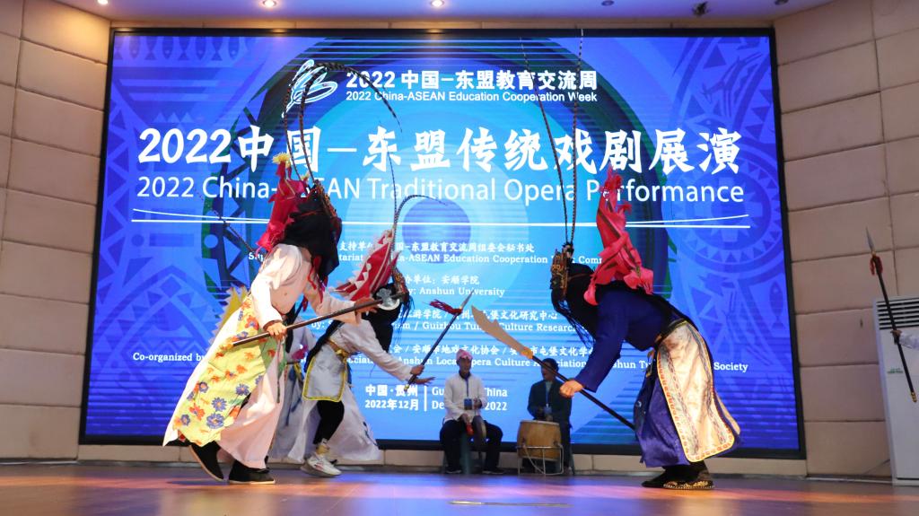 12月10日,由中国-东盟教育交流周组委会秘书处指导,安顺学院主办,安顺学院旅游学院、贵州省屯堡文化研究中心承办,贵州省屯堡研究会、安顺市地戏文化协会和安顺市屯堡文化学会协办的2022中国—东盟教育交流周传统戏剧展演在安顺学院顺利举行。