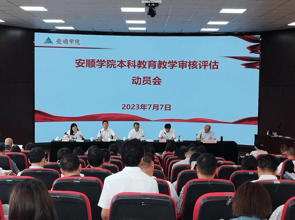 2023年7月7日下午,安顺学院召开本科教育教学工作审核评估动员会。学校党委书记罗荣彬,党委副书记、校长陈云坤,党委副书记陶文彩,党委委员、副校长郭本华,党委委员、纪委书记、监察专员蔡红英出席会议,学校全体正副处级干部、教务处、教学质量监测与评估中心全体工作人员及各二级学院教务科正副科长参会。会议由郭本华主持。