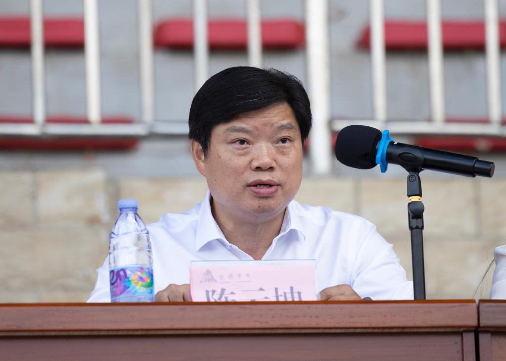 安顺学院党委副书记、校长陈云坤宣读先进连队获得者名单