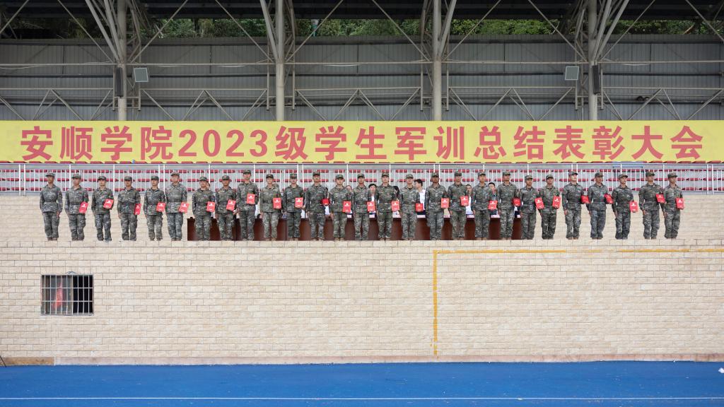 2023年9月28日,安顺学院在学校综合运动场召开2023级学生军训总结表彰大会。安顺学院党委书记罗荣彬,党委副书记、校长陈云坤,党委委员、纪委书记、监察专员蔡红英,党委委员、副校长、2023级学生军训团团长殷红敏,学校党委其他委员,各二级学院党委负责人,2023级学生军训团团部机关主要干部,2023级各班班主任,军训团各连副指导员,以及部分专职辅导员参加大会。大会由安顺学院党委副书记,军训团临时党委书记、政治委员陶文彩主持。