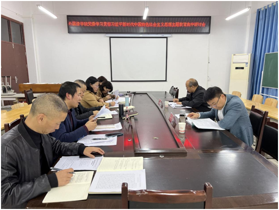 郭本华带队列席外国语学院党委理论学习中心组会议“深入开展学习贯彻习近平新时代中国特色社会主义思想主题教育”集中研讨会