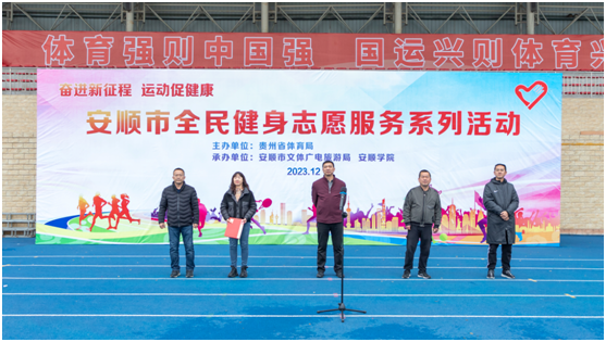 12月4日,由贵州省体育局主办,安顺市文体广电旅游局、安顺学院体育学院承办的“奋进新征程 运动促健康”全民健身志愿服务系列活动启动仪式在安顺学院运动场举行。安顺市文体广电旅游局党组成员梅正宗、群体科科长黄向清、安顺市太极拳协会代表以及安顺学院体育学院党委书记孙黔、院长邓文红、副院长雷蕾出席启动仪式。