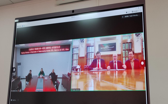 旁遮普大学校长哈立德·马哈茂德教授正式在两校合作备忘录上签字,旁遮普大学历史与巴基斯坦研究系主任麦哈布·侯赛因教授作为见证人在两校合作备忘录上签字。