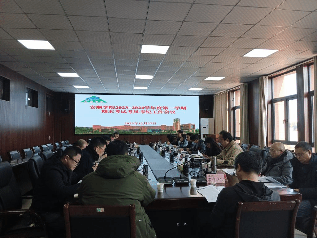 为切实做好本学期期末考试工作,加强教风学风建设、规范教师师德师风,严肃考风考纪,2023年12月27日下午,安顺学院召开2023—2024学年第一学期期末考试考风考纪工作会议。安顺学院分管校领导出席会议,相关职能部门负责人及各二级学院院长参加会议。会议由安顺学院党委委员、党委统战部部长、教务处处长杜志明主持。