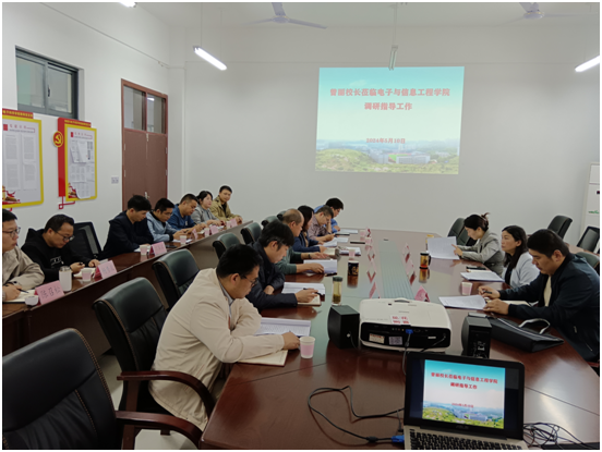 2024年5月10日,安顺学院校长曾丽到电子与信息工程学院调研指导工作,电子与信息工程学院党委书记桂放、院长闫万君和学院教师代表参加座谈。