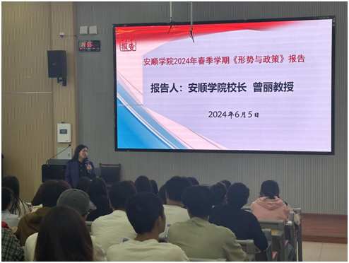 安顺学院校长曾丽教授以“把握经济全球化大势扩大高水平对外开放”为题为青年大学生作形势与政策报告