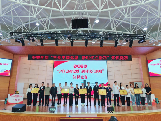 为了深入学习党的光辉历史,传承红色基因,进一步激发全校师生的爱党爱国热情,坚定理想信念,勇担新时代赋予的使命与责任,2024年6月24日,由中共安顺学院委员会主办,中共安顺学院委员会组织部、共青团安顺学院委员会、安顺学院马克思主义学院联合承办的“学党史颂党恩、新时代立新功”知识竞赛活动在学术报告厅举行。安顺学院党委书记罗荣彬,党委委员、组织部部长何朝越出席活动,安顺学院团委书记王旭、马克思主义学院包华军博士、党委组织部黄兰椿老师担任仲裁评委。