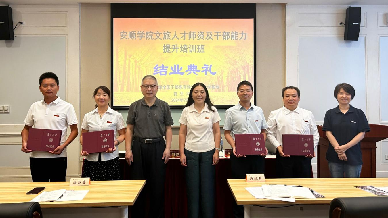7月26日,安顺学院2024年暑假文旅人才师资及干部能力提升培训在中组部全国干部教育培训复旦大学基地举行结业典礼。复旦大学继续教育学院副院长葛宏波,安顺学院党委委员、副校长殷红敏,复旦大学继续教育学院拓展中心主任刘华及培训班全体学员参加结业典礼。