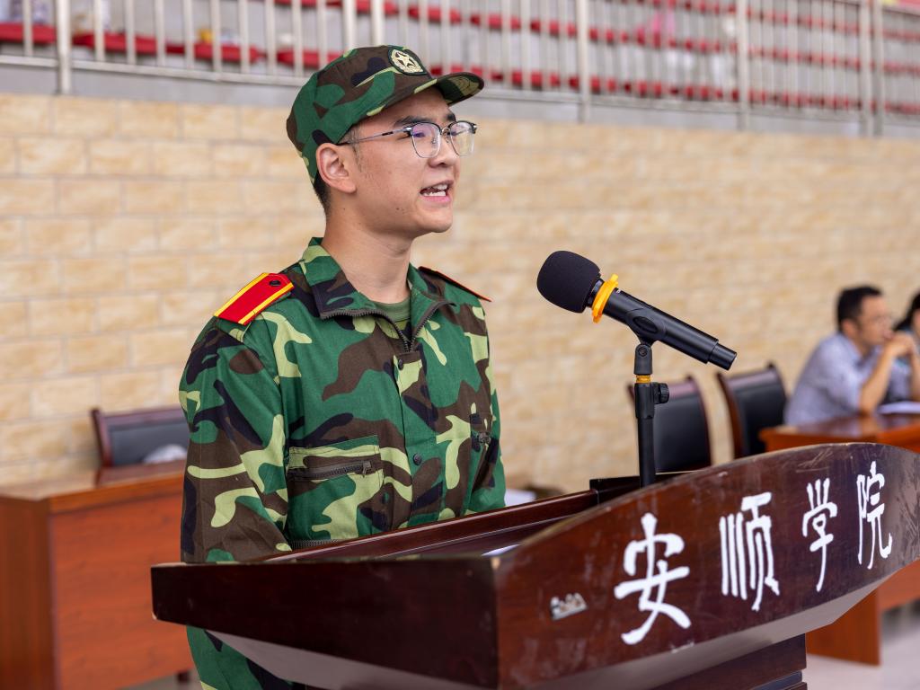 安顺学院党委委员、副校长、学生军训团团长殷红敏以《尚武增能  负重前行》为题作讲话。她表示,不苦不是军训,磨炼才有收获,希望同学们在军训中真正把远和近的两个人生目标结合起来,真正把个人的幸福和党、国家、人民的召唤两个人生维度融合起来,知重更负重、有向更有力、有始更有终,学会吃苦、拼搏,学会用功、成事,学会有情、担当。为高质量完成此次军训,她提出三点要求,一是要坚定做好中国人的底气和志气;二是要厚植爱党爱国爱军爱民的情感;三是要坚定走好中国路的定力和能力。