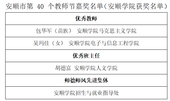 喜报 | 安顺学院教师和部门荣获安顺市第40个教师节嘉奖
