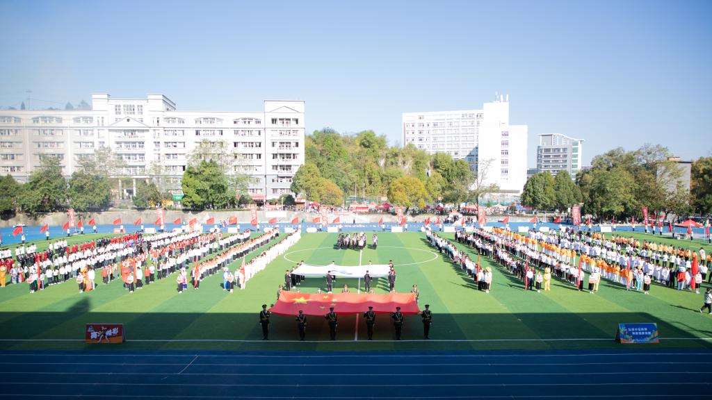 罗荣彬宣布安顺学院“农业银行杯”第九届体育文化节开幕。整个操场上响起了热烈的欢呼声。